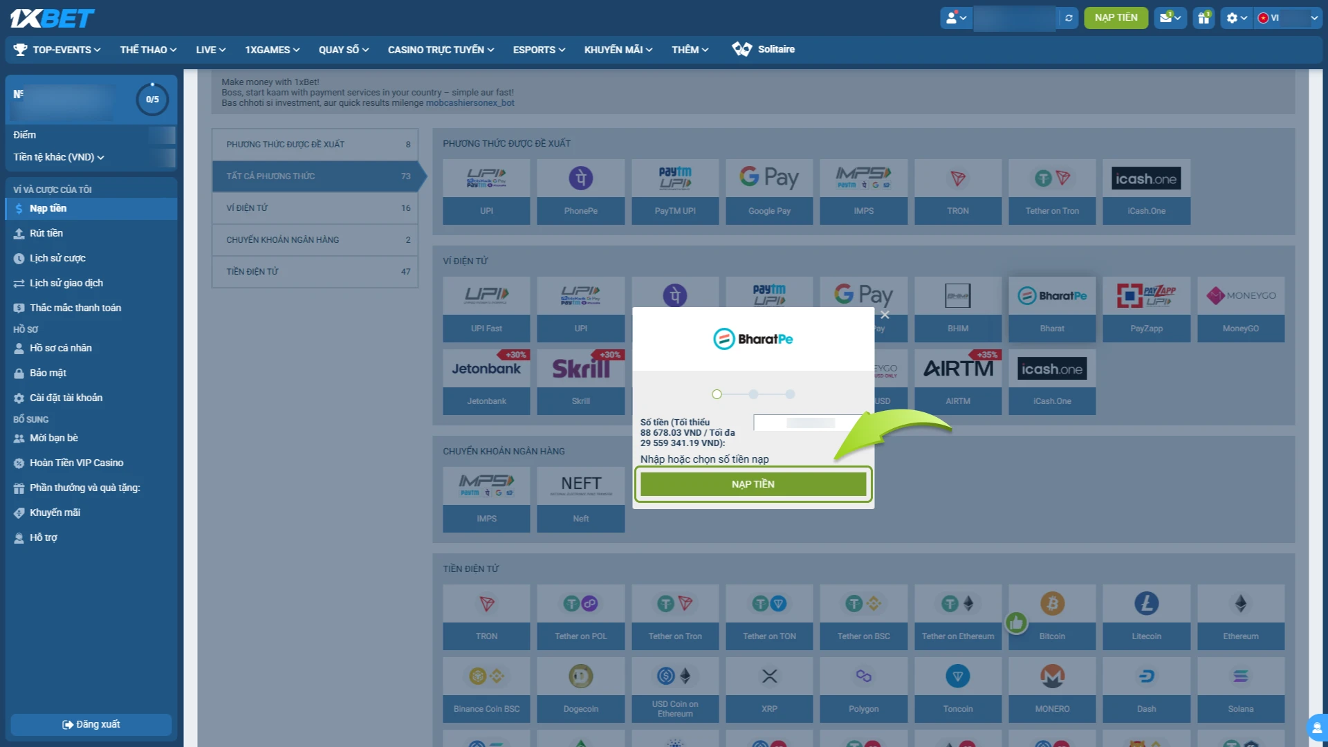 Nạp tiền rút tiền nhà cái 1xbet – Hướng dẫn chi tiết cho người chơi mới