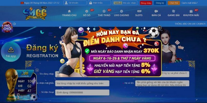 Người chơi cần điền đầy đủ thông tin cá nhân vào form đăng ký trên trang web của SM66, sau đó xác thực tài khoản qua email hoặc số điện thoại.