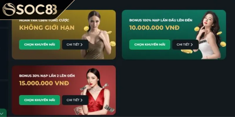 Các khuyến mãi Soc88 nổi bật thường bao gồm: